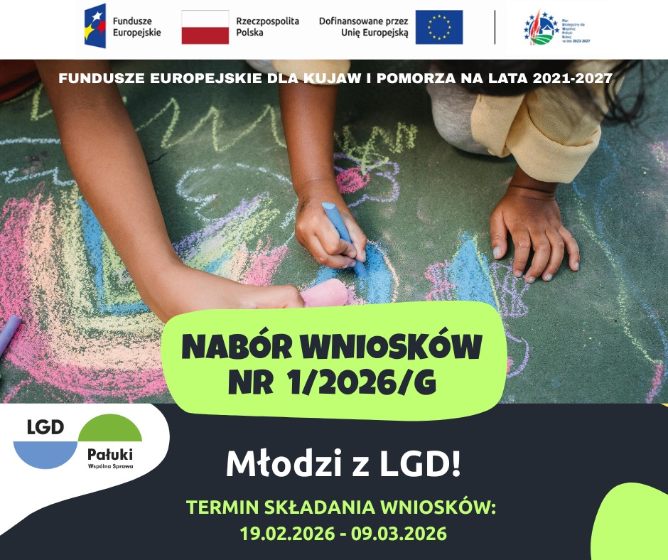 Więcej szczegółów oraz regulamin na stronie EFS+ Ogłoszenie o naborze wniosków 1/2026/G | LGD Pałuki