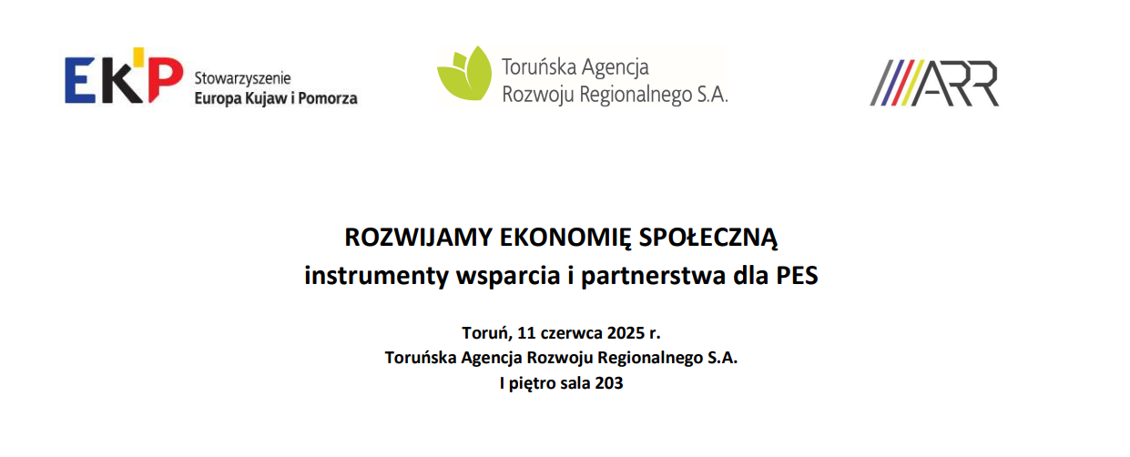 Zachęcamy do udziału w szkoleniu pt. „Rozwijamy ekonomię społeczną – instrumenty wsparcia i partnerstwa dla PES”, które odbędzie się 11 czerwca 2025 r. o godz. 10:00 w siedzibie Toruńskiej Agencji Rozwoju Regionalnego S.A. (ul. Włocławska 167, Toruń, I piętro, sala 203).